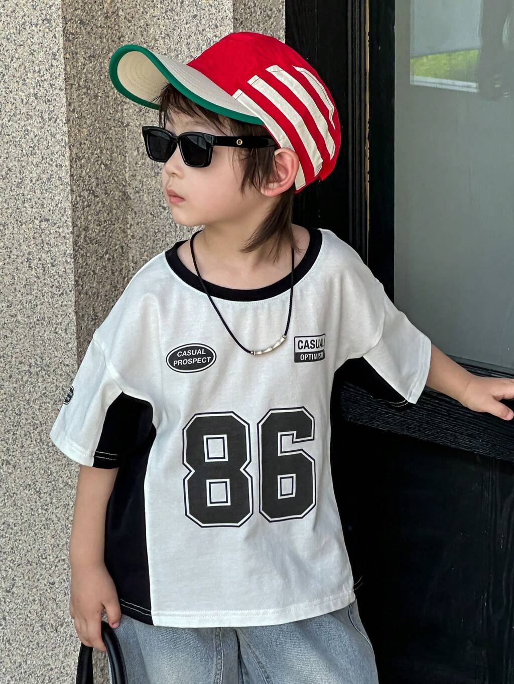 Young Boy Color Block Round Neck Casual Versatile Daily Wear Short Sleeve T-Shirt Summer