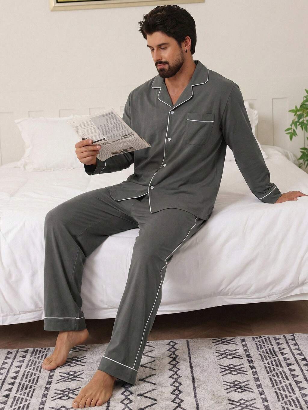 Men's Casual Shirt And Pajama Set, Suitable For Spring And Autumn