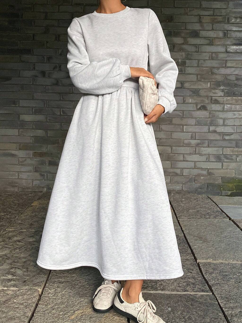 Women's Casual Solid Color Round Neck Mid-Length Dress, Autumn