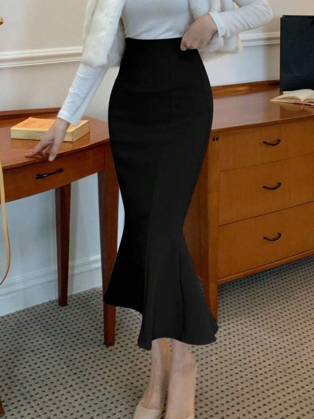 Women's Solid Color High Waist Elegant Mermaid Skirt