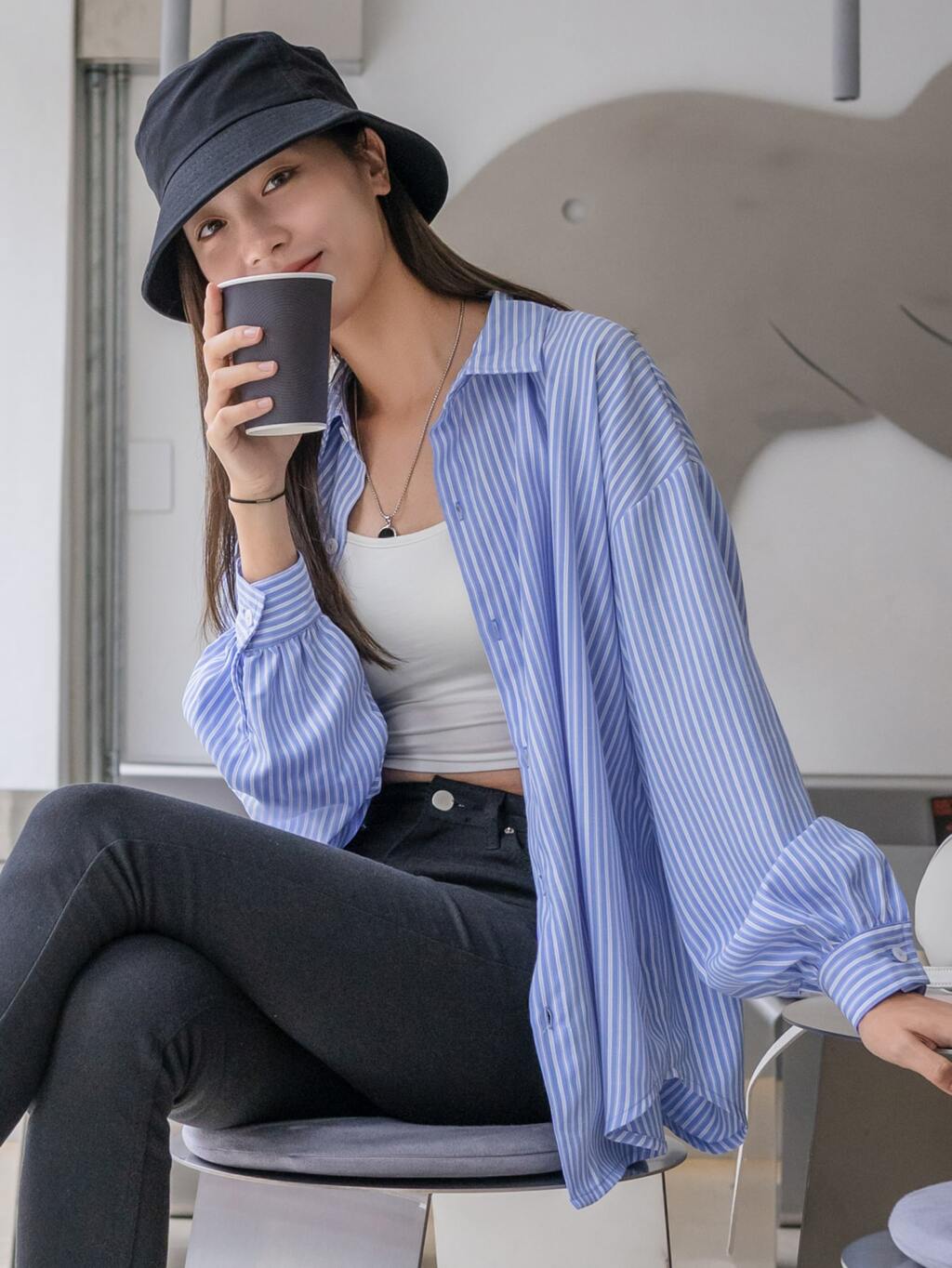 Striped Drop Shoulder Shirt,Long Sleeve Tops,Fall Clothes Preppy Tops