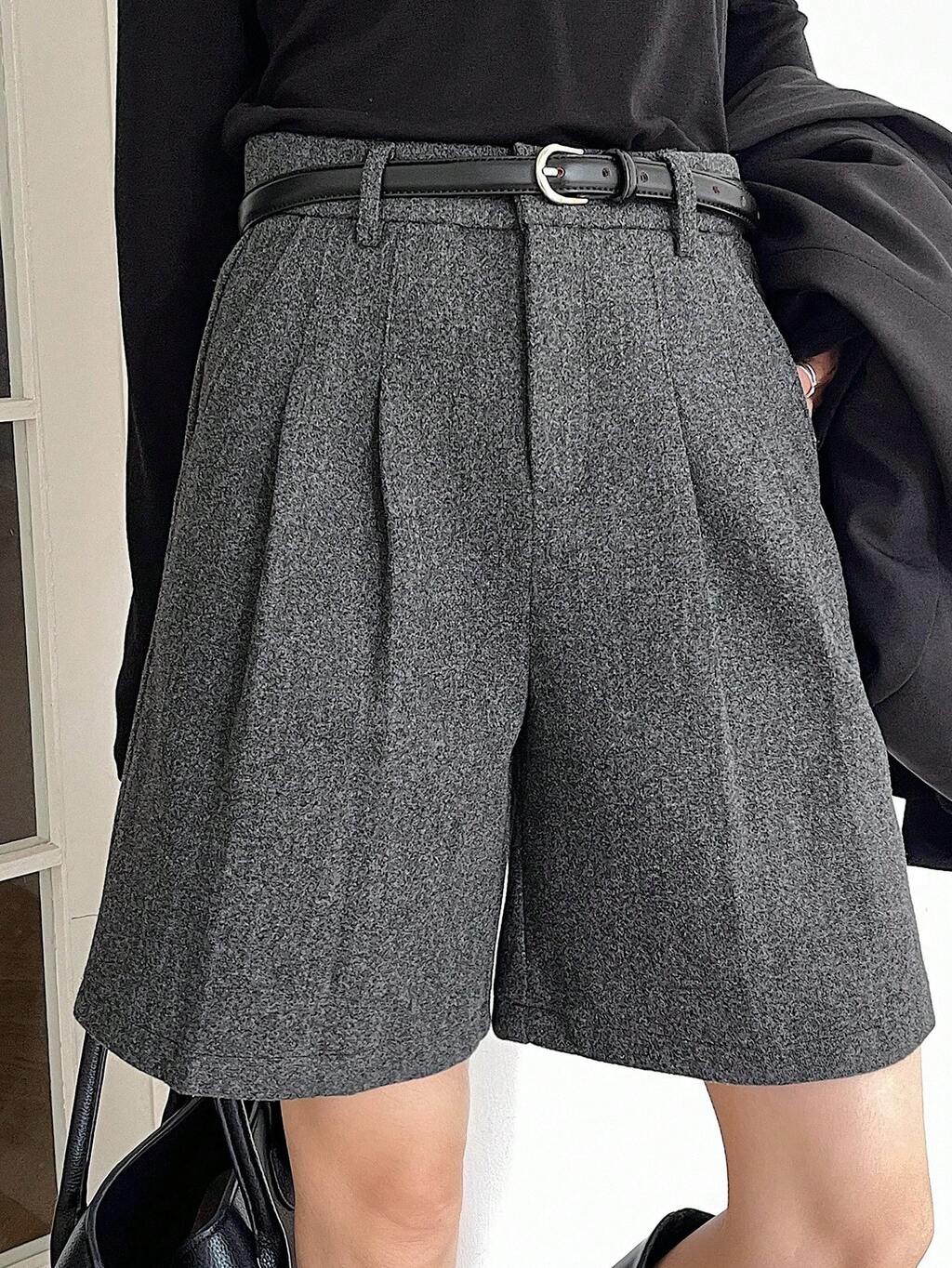 Women's Solid Color Straight Pocket Loose Bermuda Shorts, Casual Autumn/Winter