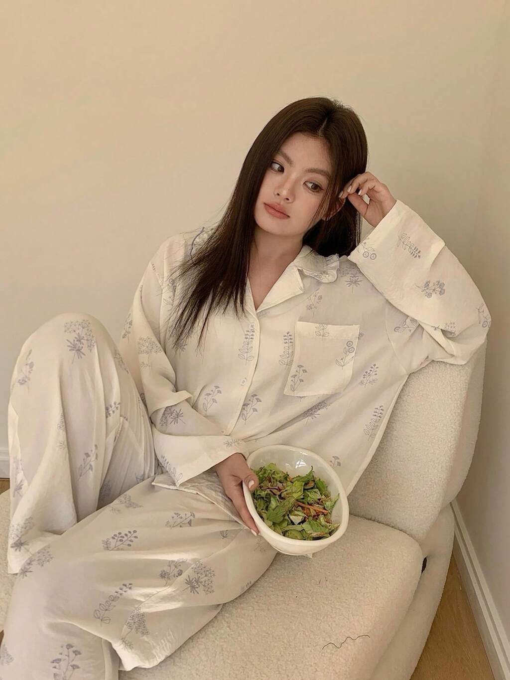 Dazy Plus 2pcs Casual Floral Print Loose Fit Long Top And Pants Pajama Set, Spring/Summer/Autumn