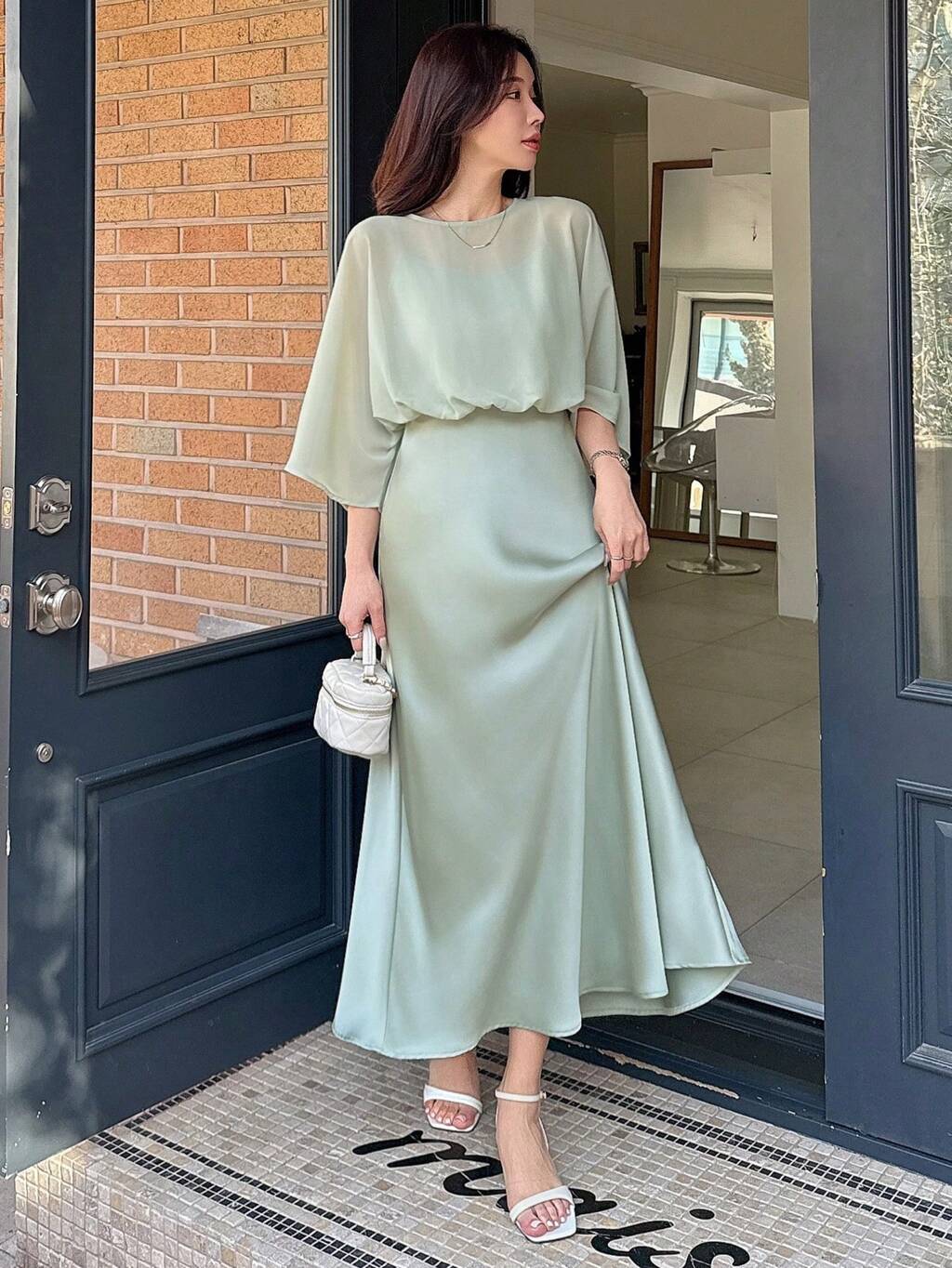 Women's Round Neck Short Sleeve Mesh Patchwork Casual Mid-Length Dress Sundress Maxi Dress