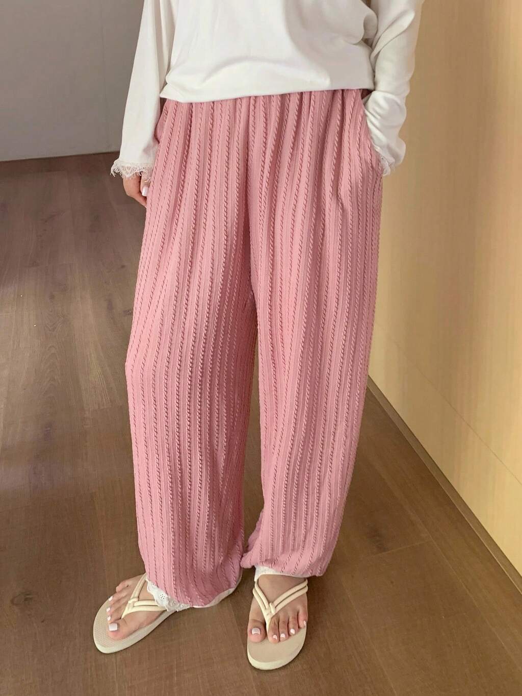 Striped Bow Decor Loose Fit Women Pajama Bottoms