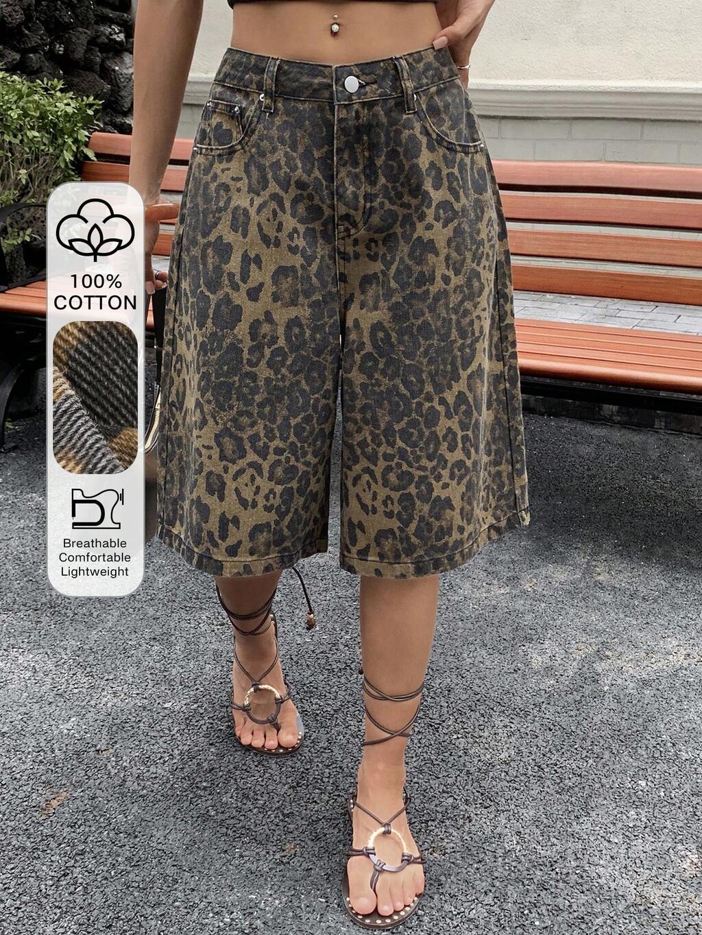 Women's Leopard Print Casual Loose Denim Shorts Summer Jorts