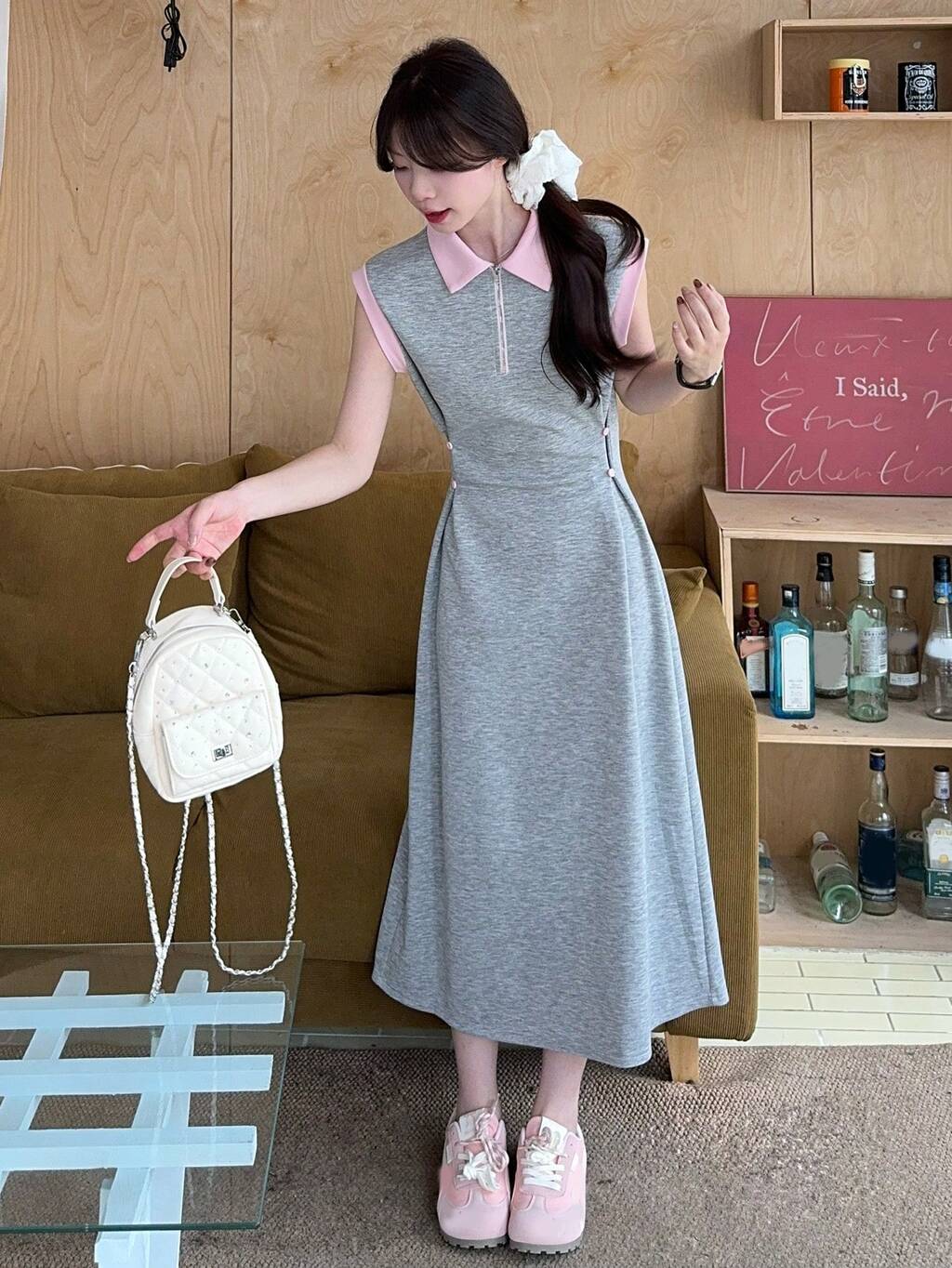 Women's Polo Collar Contrast Color Casual Short Sleeve Midi Dress Summer Sundress