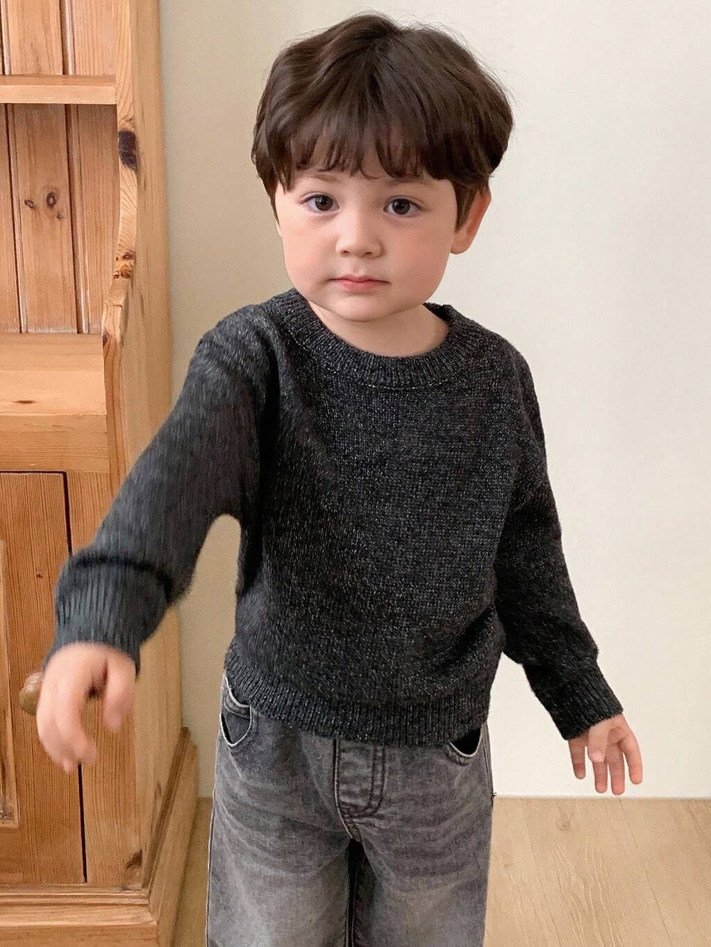 Toddler Boys' Crew Neck Solid Color Korean Style Versatile Long Sleeve Sweater, Spring/Autumn