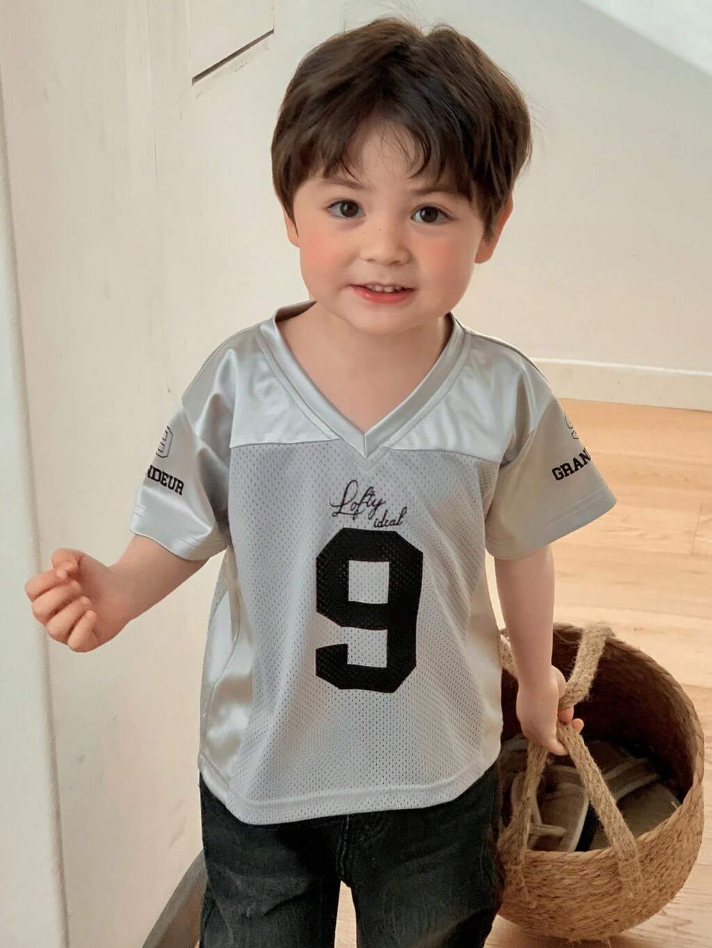 Toddler Boys' Round Neck Contrast Color Letter Print Casual Korean Style Top