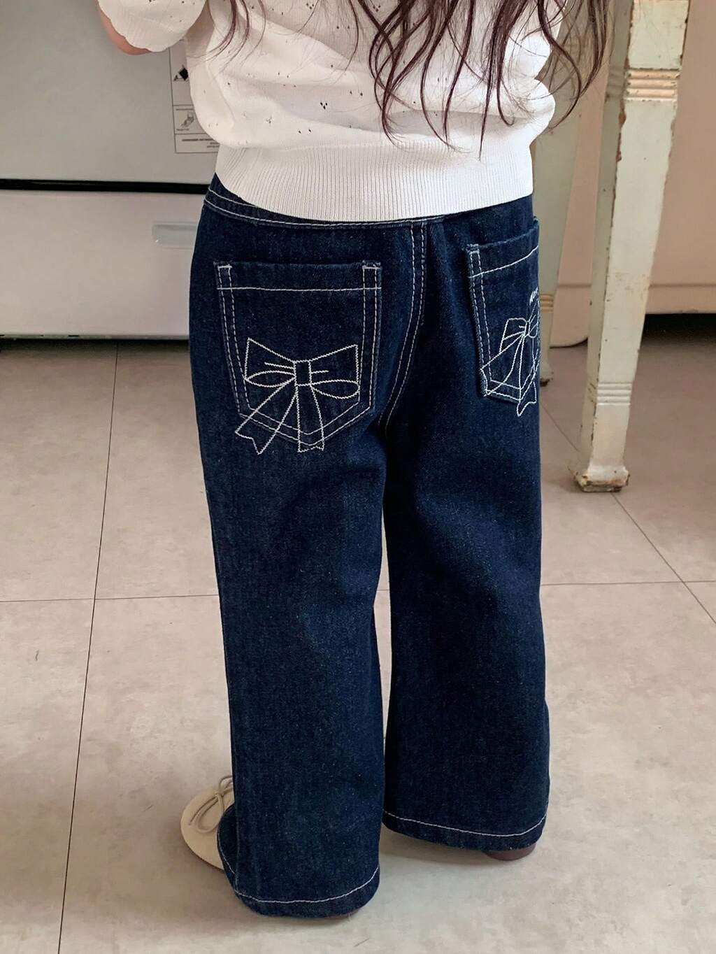 Toddler Girls' Spring/Summer Embroidered Casual Loose Wide-Leg Jeans