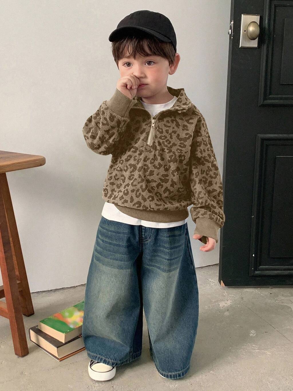 Toddler Boys' Korean Style Leopard Print Lapel Loose Long Sleeve Top
