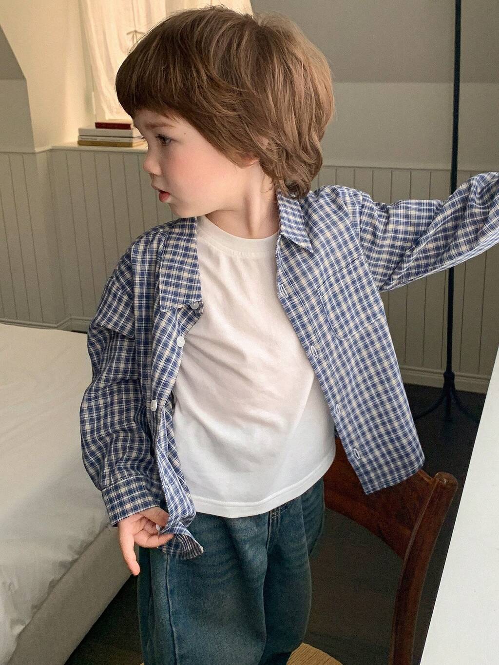Baby Boy Plaid Long Sleeve Single-Breasted Casual Shirt