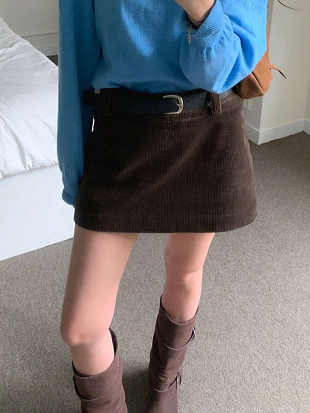Merrald Coffee Corduroy High Waist A-Line Skirt, Vintage & Slimming, Autumn/Winter