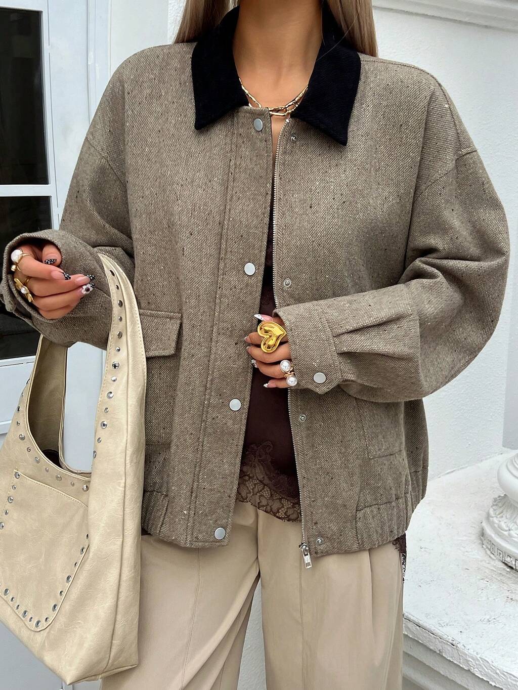 Women's Contrast Color Collar Patchwork Loose Casual Jacket