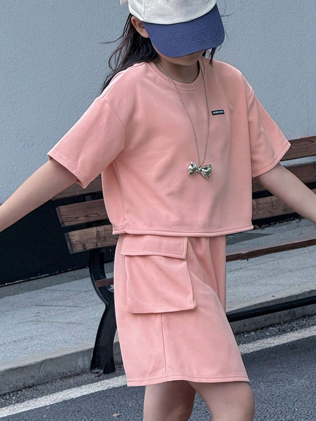 2pcs/Set Tween Girl Crew Neck T-Shirt & Skirt Spring/Summer Outfit