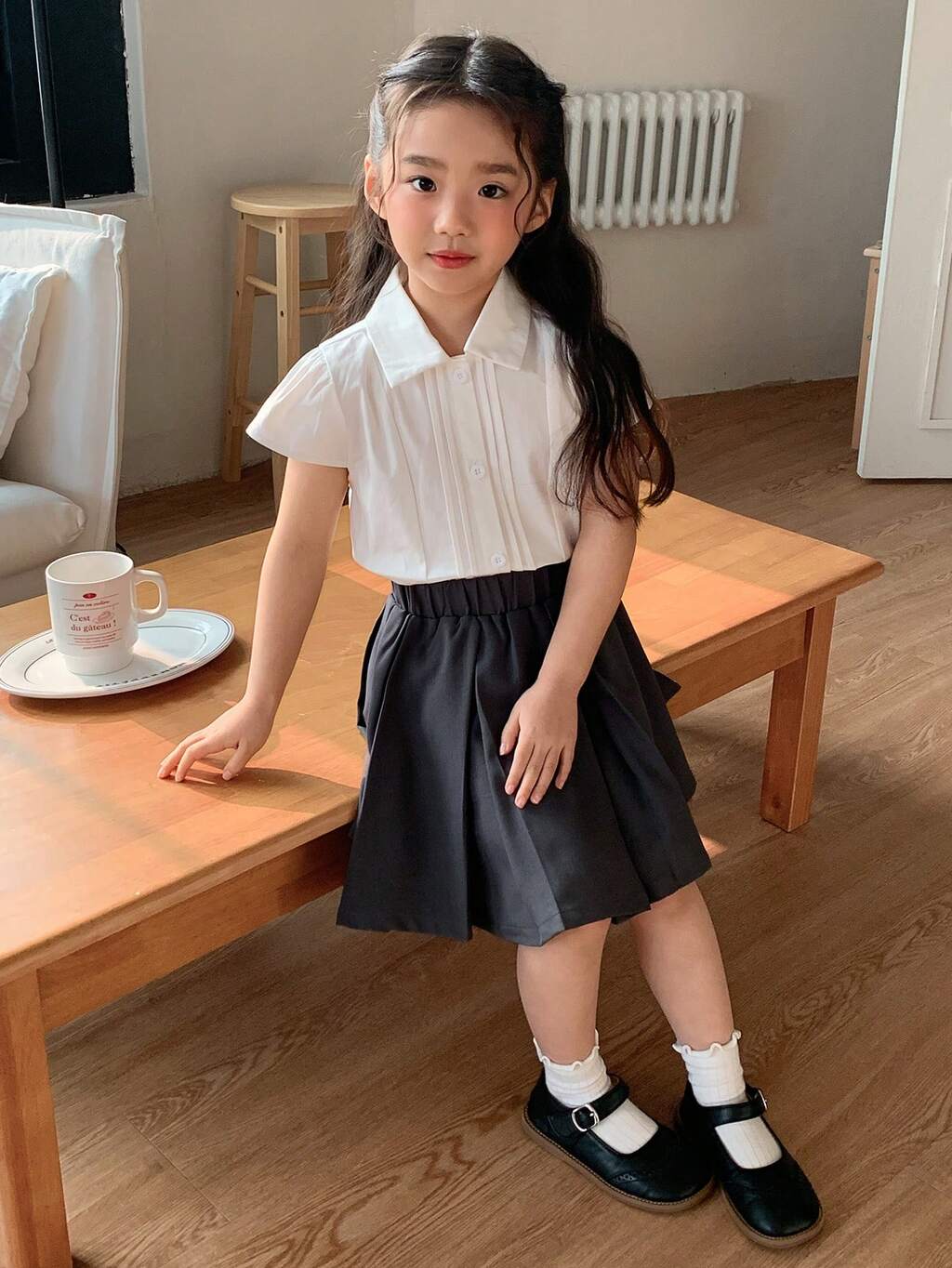 Koszula z krótkim rękawem dla młodej dziewczyny z kołnierzykiem