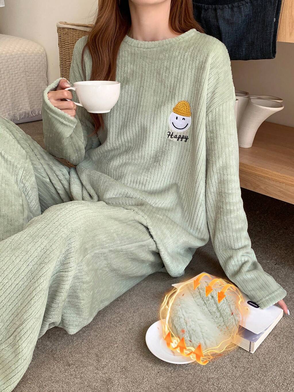 Thickened Embroidered Home Wear Suit With Letters Fall,Winter Pajama