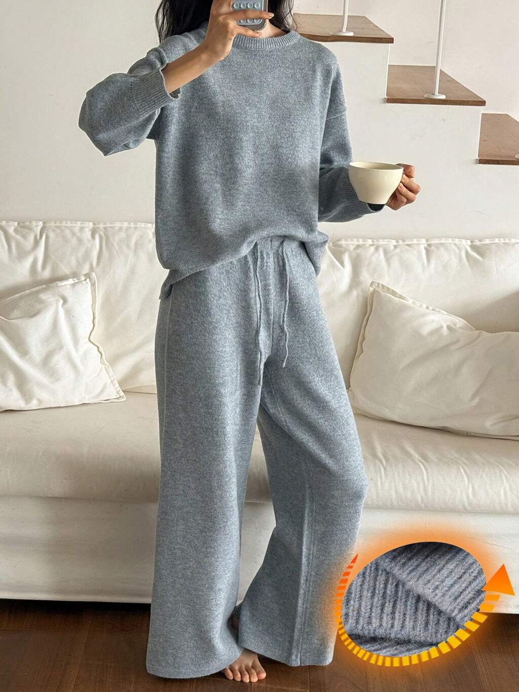 Women's Simple Solid Color Knitted Pajama Set, Winter