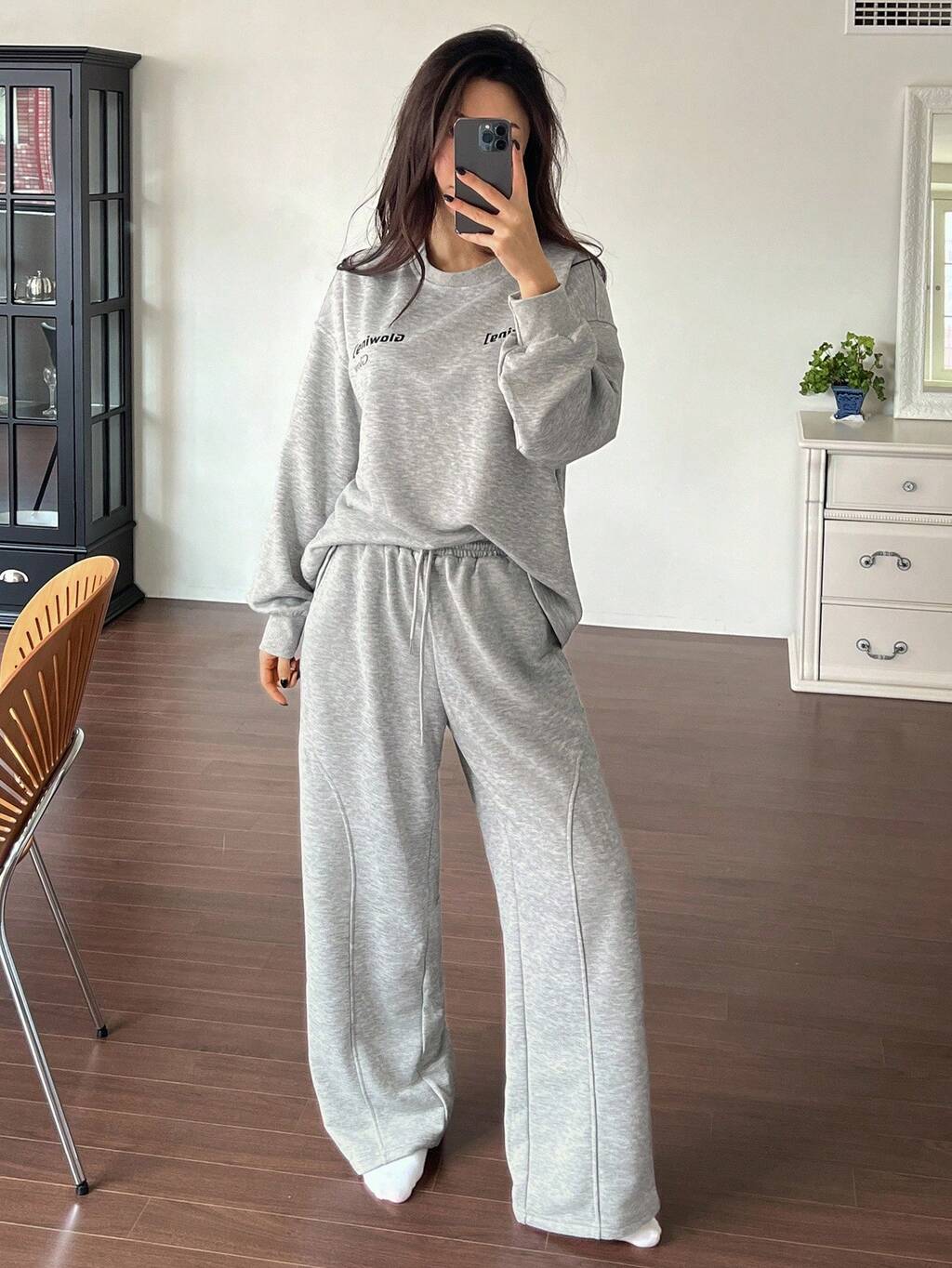 Women's Letter Print Decoration Loose Fit Sweatshirt Pajama Set, Autumn/Winter, Fall Clothes, Cozy Outfits