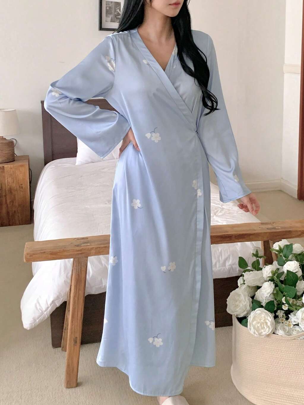 Elegant Floral Print Long Robe For Women