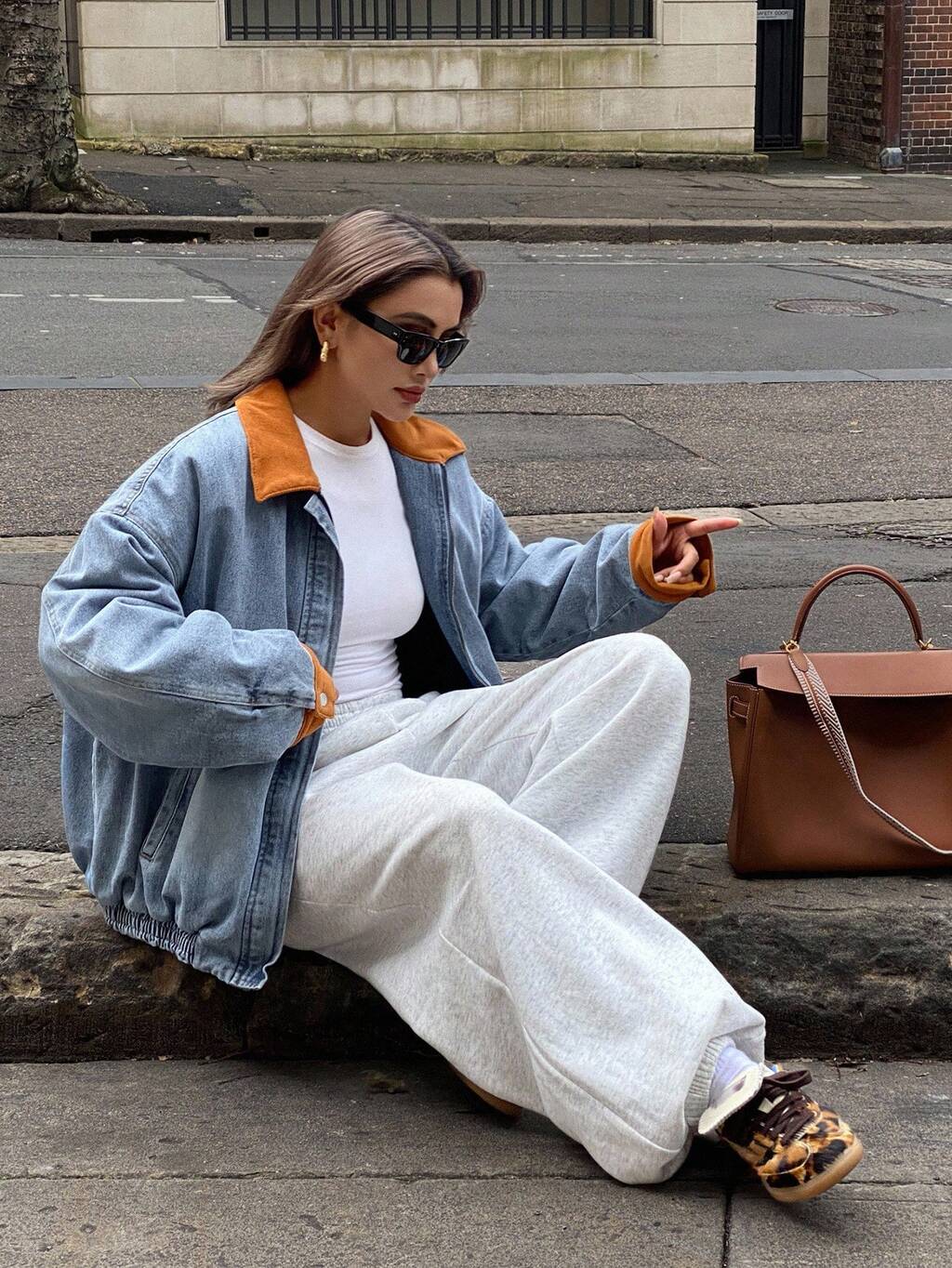 여성용 컬러 블록 칼라 & 커프스 루즈 데님 재킷, 가을/겨울 여성 코트