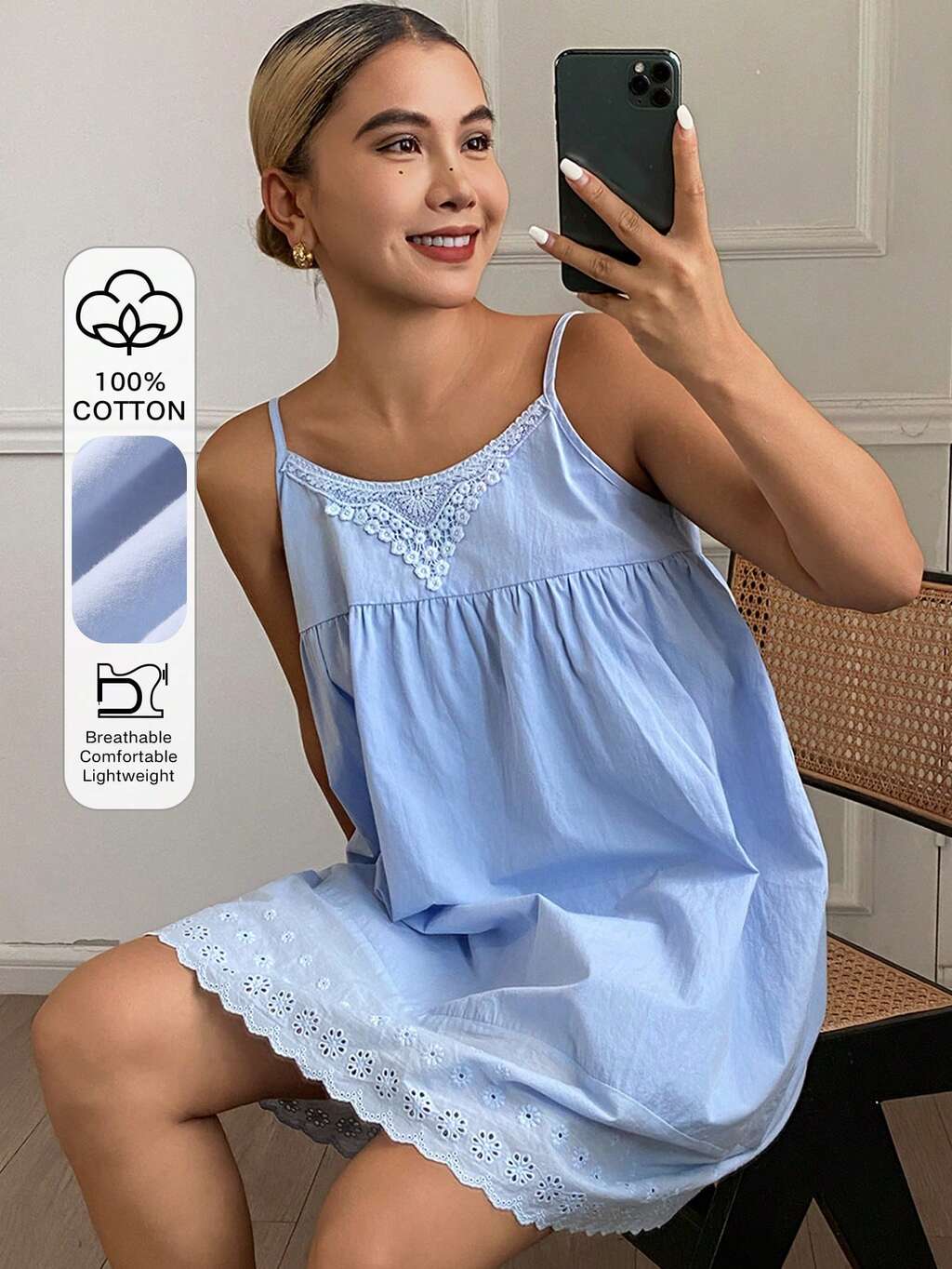 Women's Contrast Lace Elegant Camisole Nightgown