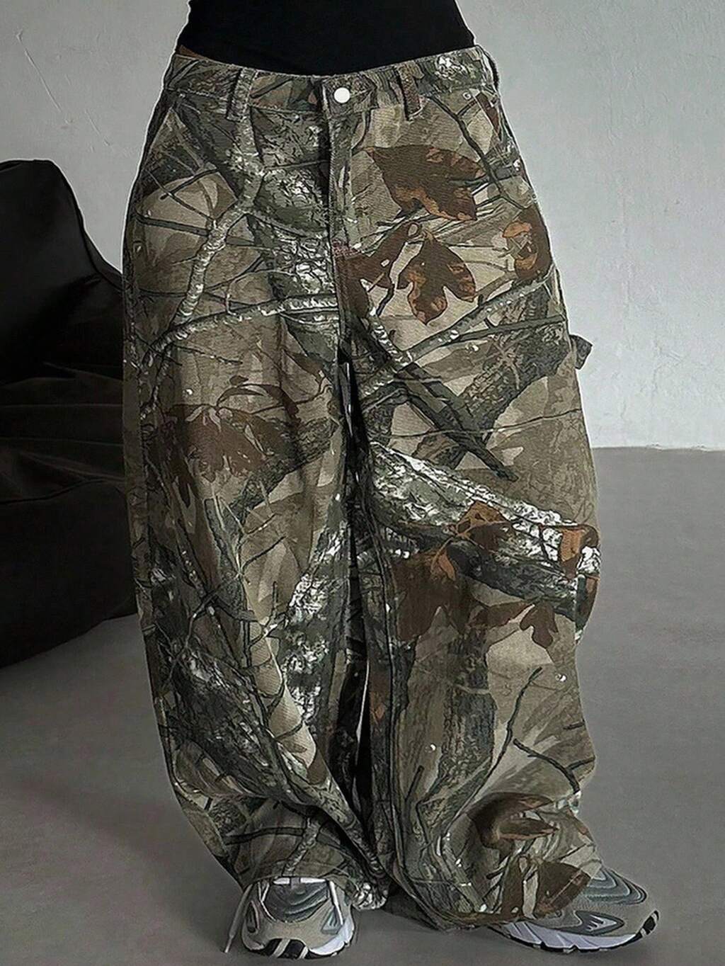 Dazy Plus Camouflage Print Loose Wide Leg Street Style Long Jeans, All Season