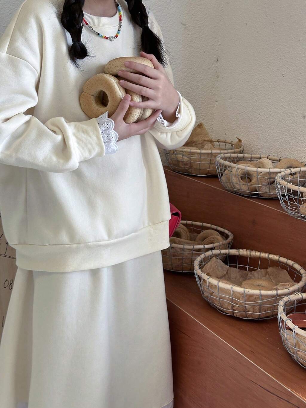 2-teiliges Mädchen-Outfit für Herbst, einfarbig, Schulkleidung