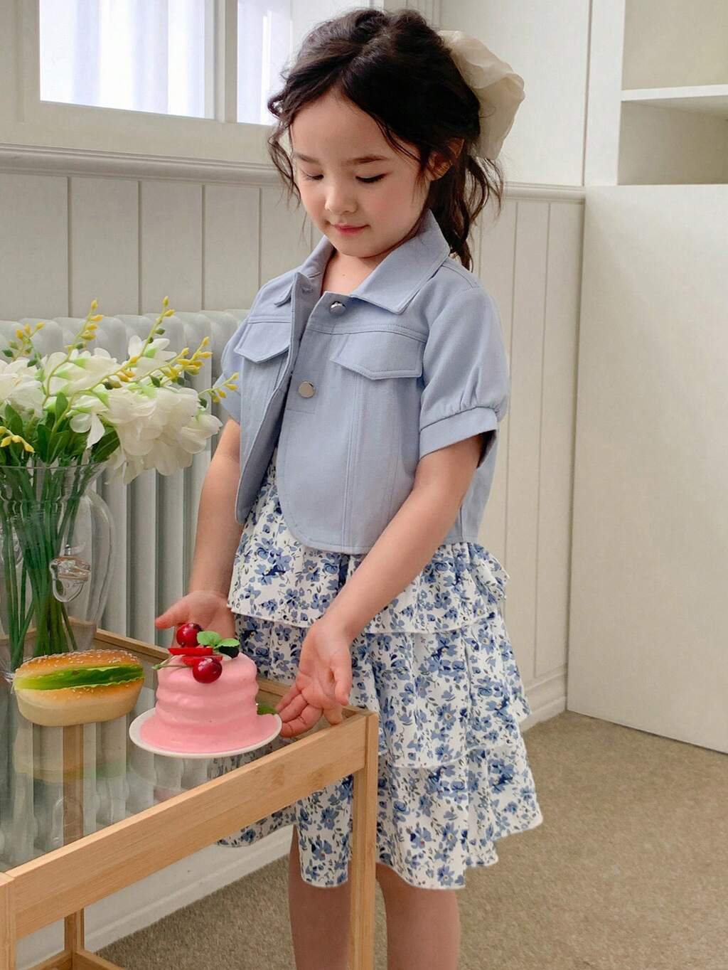 2pcs/Set Young Girl Fall Outfit Floral