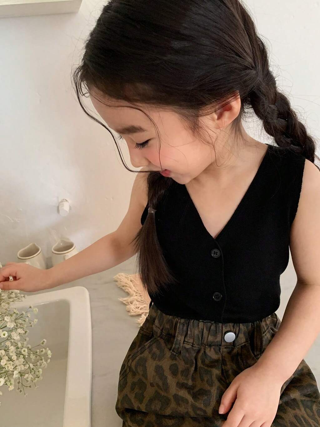 Young Girl Solid Color V-Neck Single-Breasted Casual Tank Top Summer