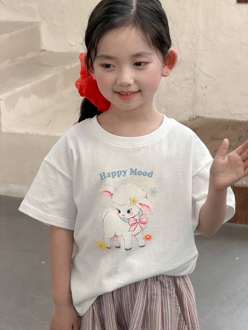 Young Girl' Cartoon Print Round Neck Short Sleeve Casual T-Shirt Spring Summer