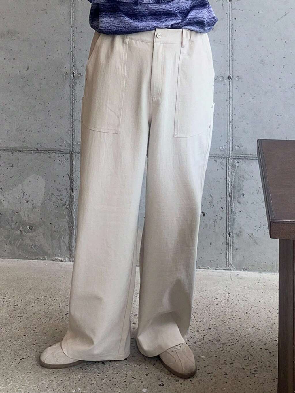 Navy Blue Decorative Strap Solid Color Men's Pants, Spring/Autumn