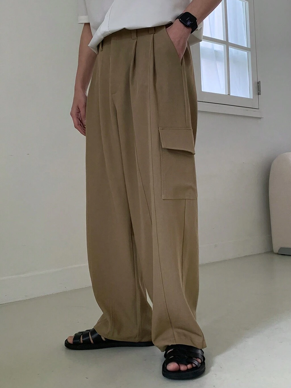 Plain-Colored Khaki Men's Suit Pants, Suitable For Commuting, Spring/Summer