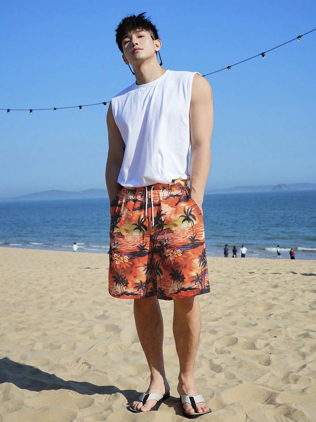 Men's Drawstring Printed Shorts With All-Over Print, Suitable For Beach, Vacation, Summer