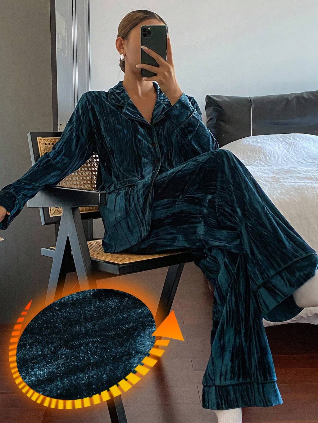Charming Textured Velvet Fabric Loose Women Pajama Set, Fall Winter Clothes