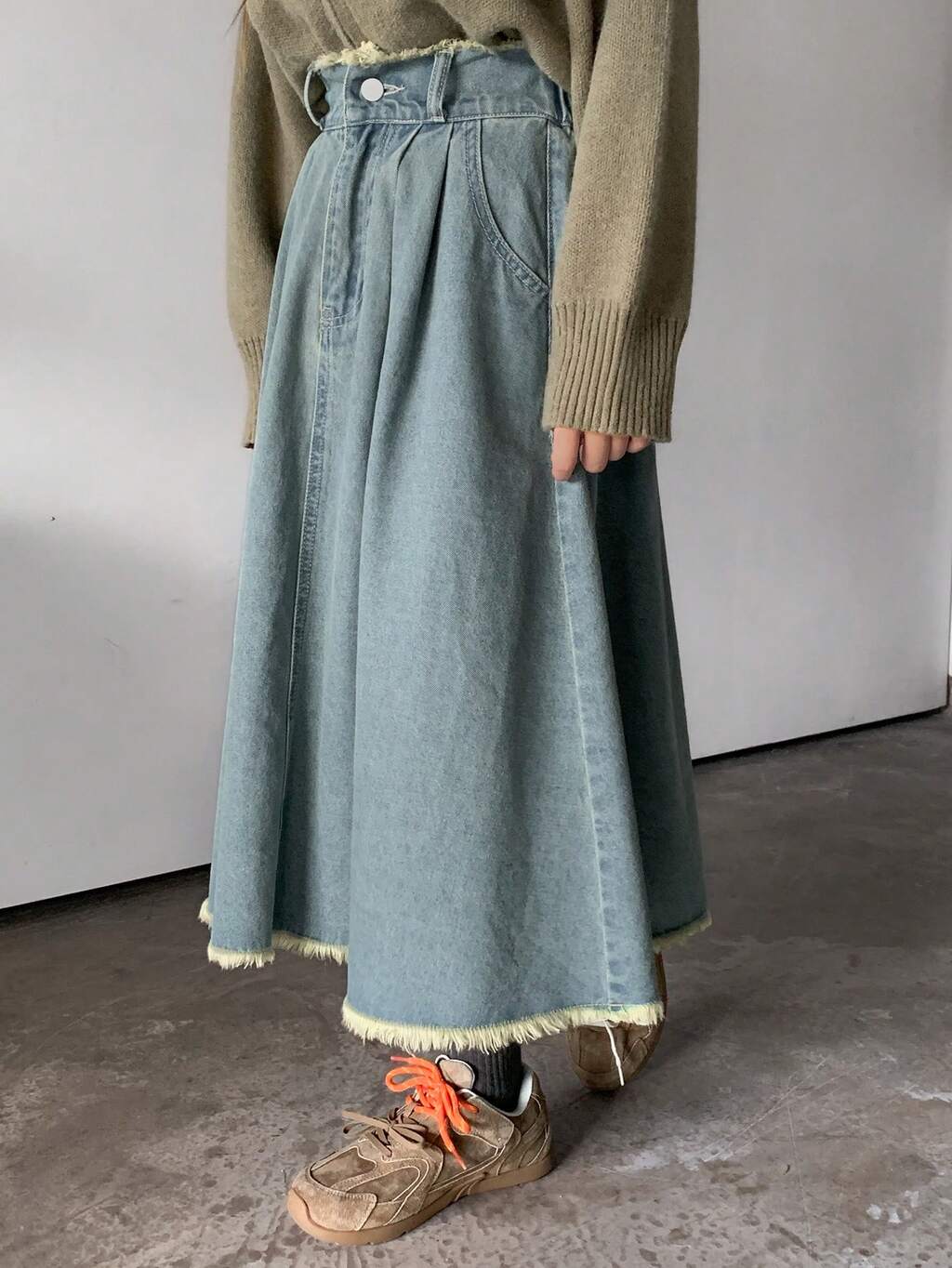 Girls Denim Sleeveless Vest And Denim Skirt 2-Piece Set, Fall Outfit