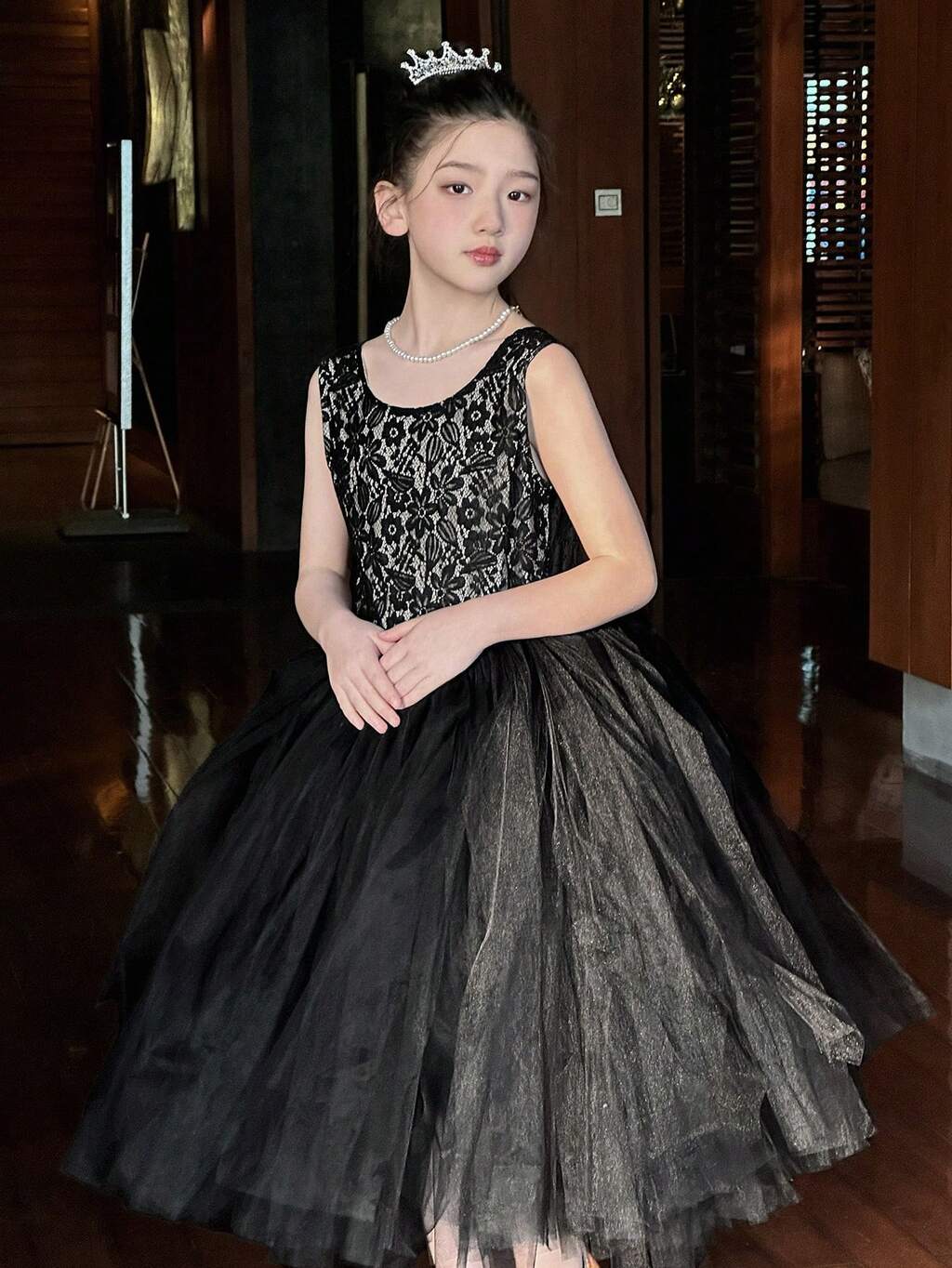 Young Girls Round Neck Party Birthday Contrast Color Sleeveless Mesh Patchwork Dress