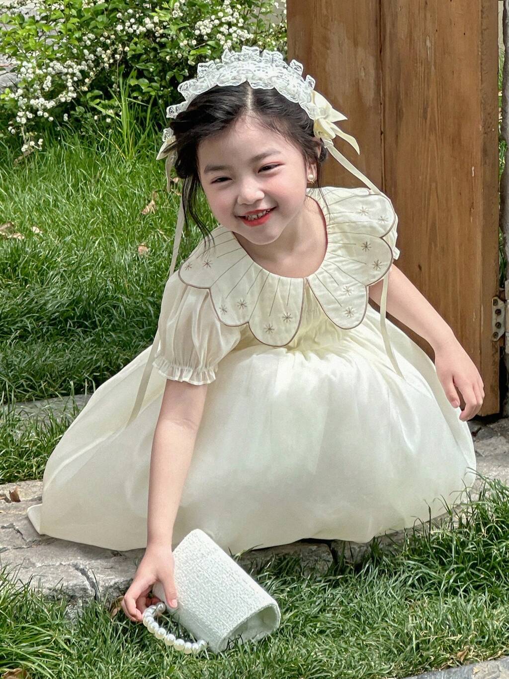 Young Girl Peter Pan Collar Mesh Lace Decor Elegant Dress,Girls Summer Outfits