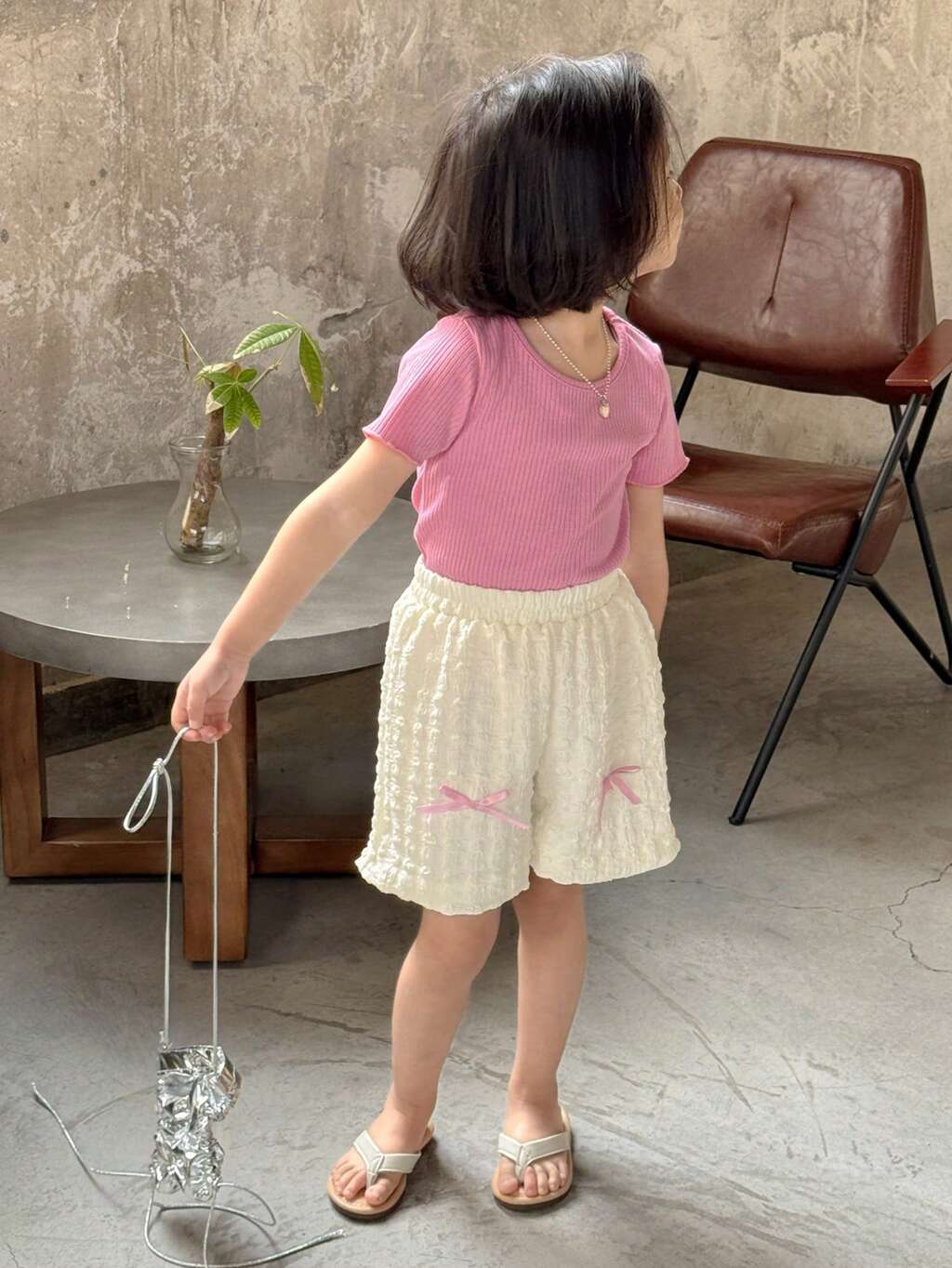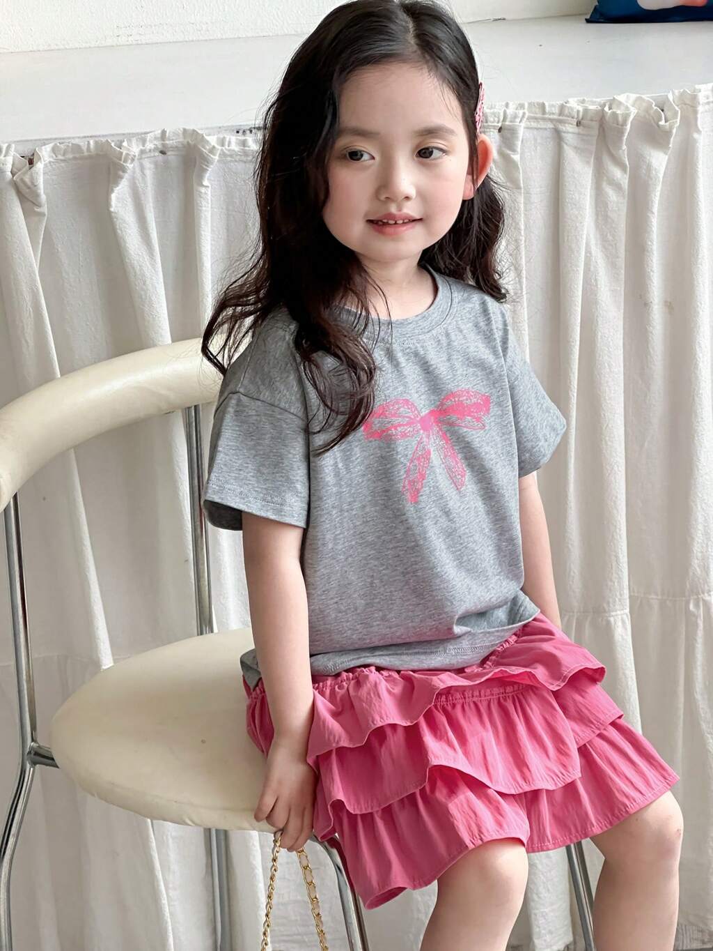 Young Girl Bow Decor Short Sleeve Casual T-Shirt, Summer