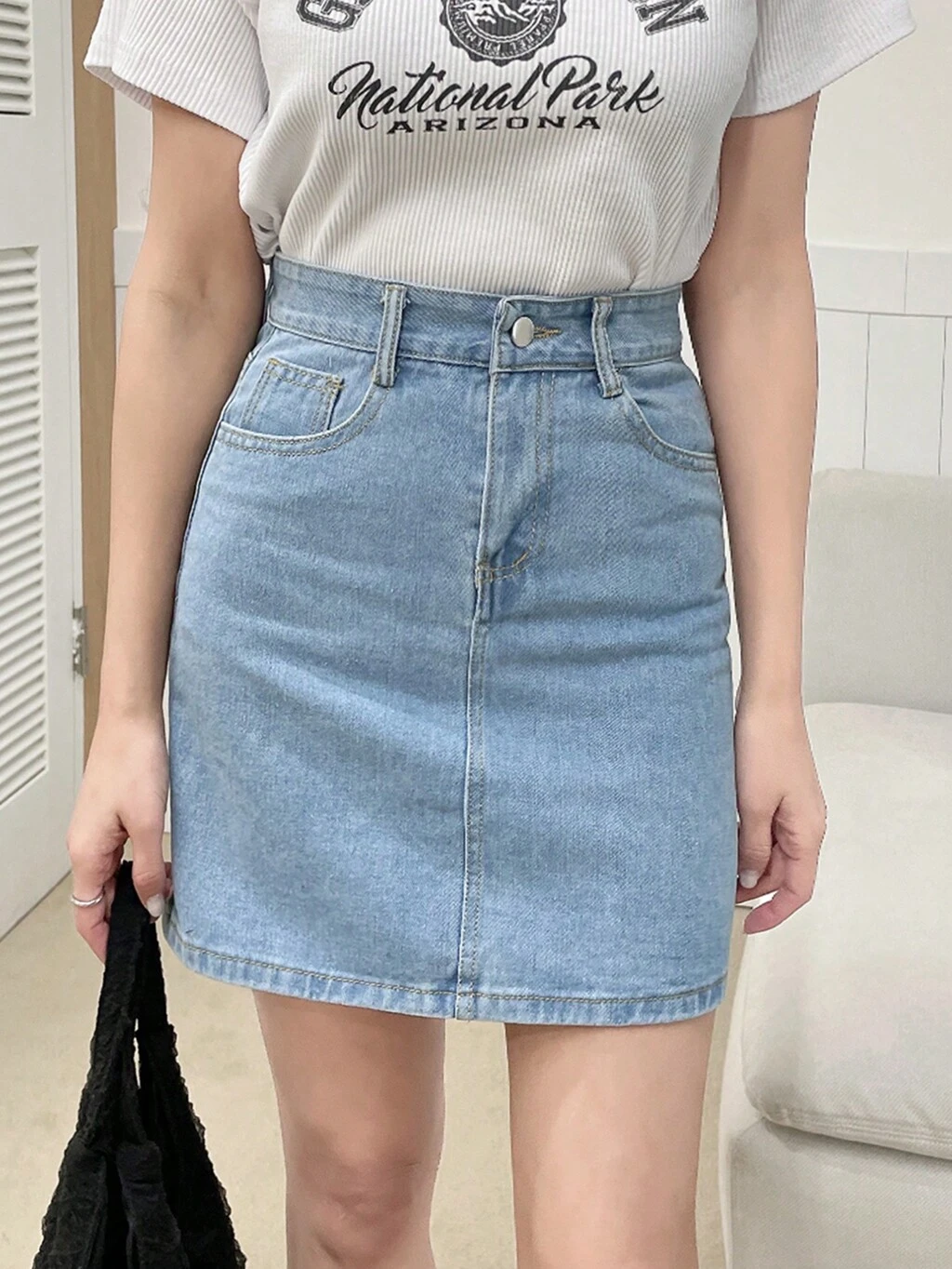 High Waist Slant Pocket Denim Skirt Jeans Skirt