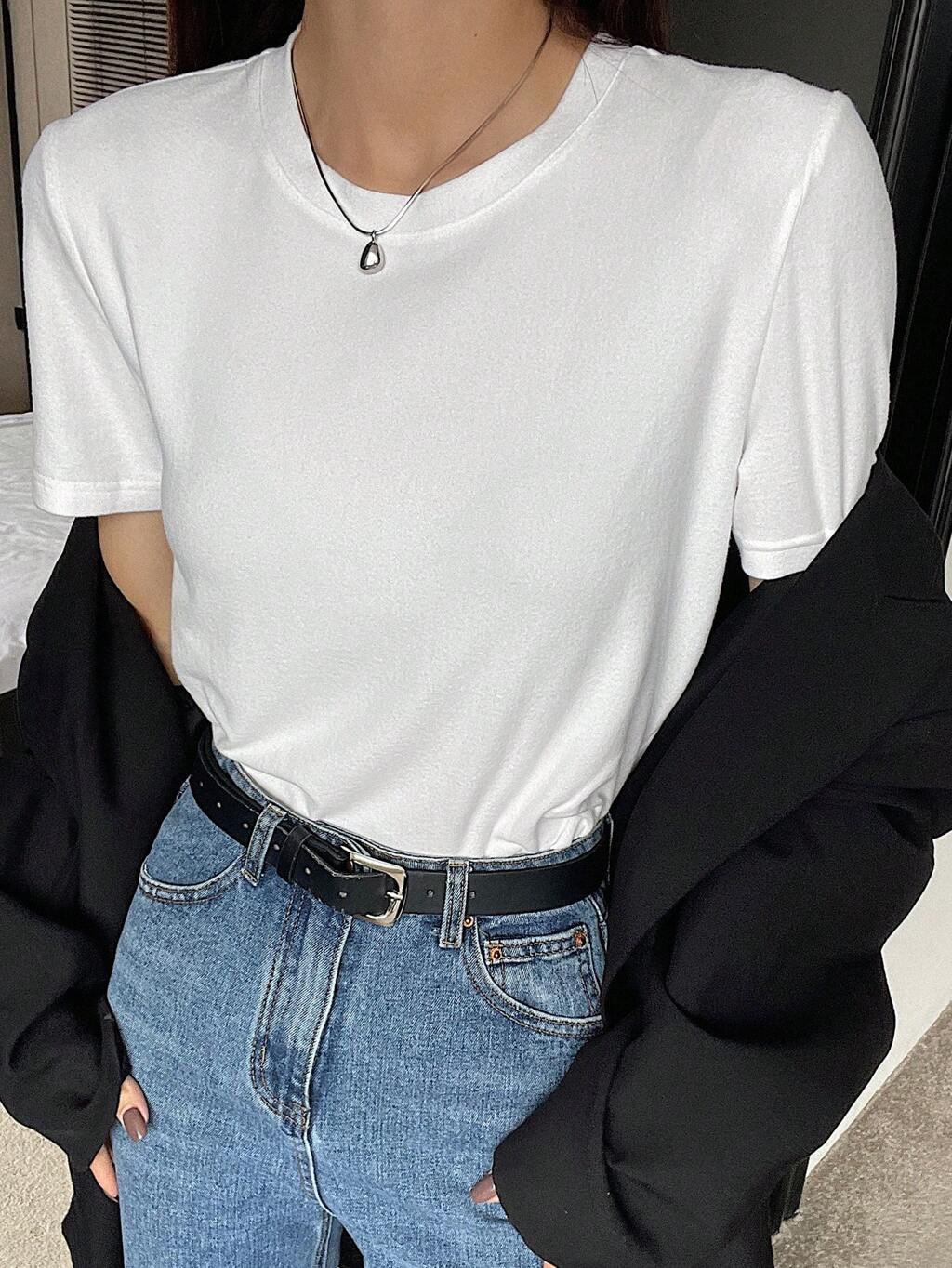 Basic Round Neck Solid Color Short Sleeve T-Shirt For Women
