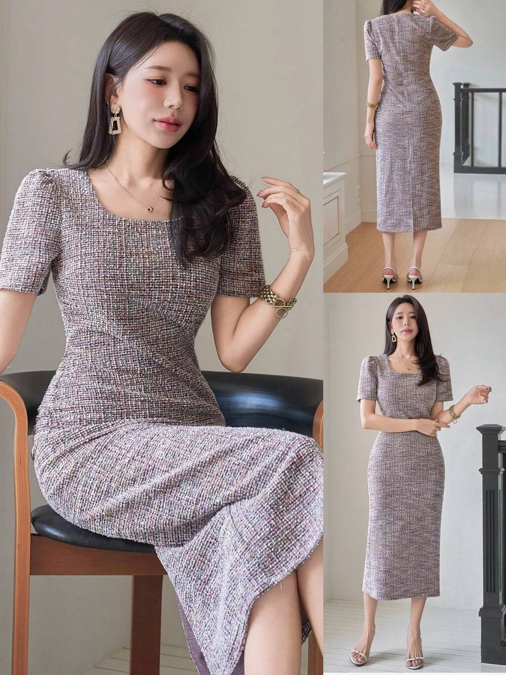Women's Elegant Textured Square Neck Puff Sleeve Dress, Summer Wedding Guest Dress Sundress