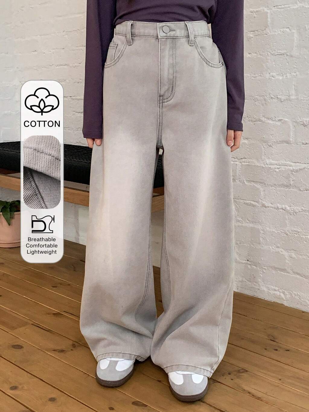 Tween Girls' Solid Color Slant Pocket Casual Versatile Wide Leg Jeans