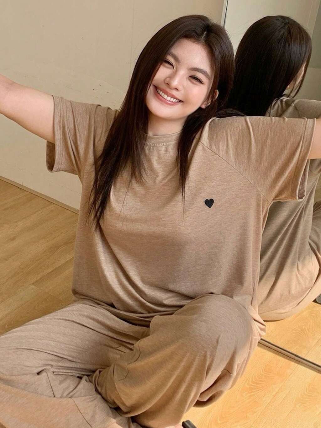 Dazy Plus 2pcs Solid Color Casual Pajama Set, Round Neck Short Sleeve Loose Top And Long Straight Pants, Spring/Summer Sleepwear