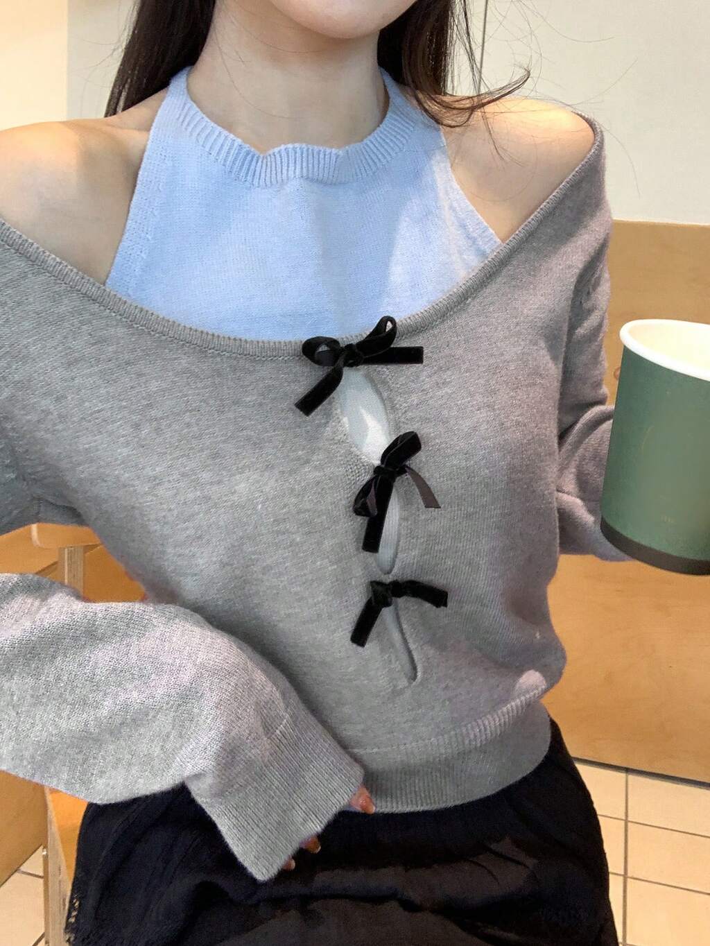 Loose Casual Elegant Bowknot Decor 2 In 1 Knitted Sweater For Women, Autumn/Winter