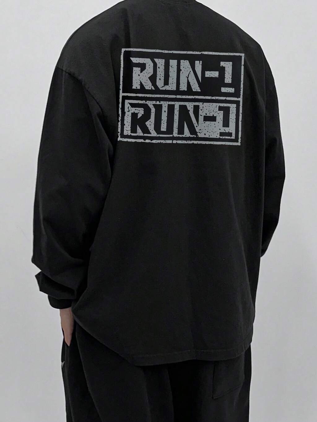 Men's Distressed Letter Print Black T-Shirt, Autumn