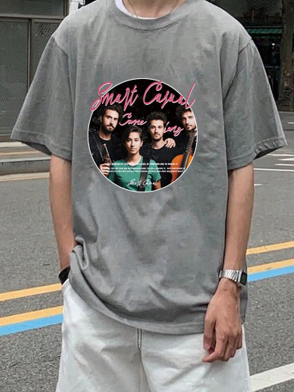 Men's Summer Band Slogan Printed Casual Round Neck Short Sleeve T-Shirt,Graphic Tees