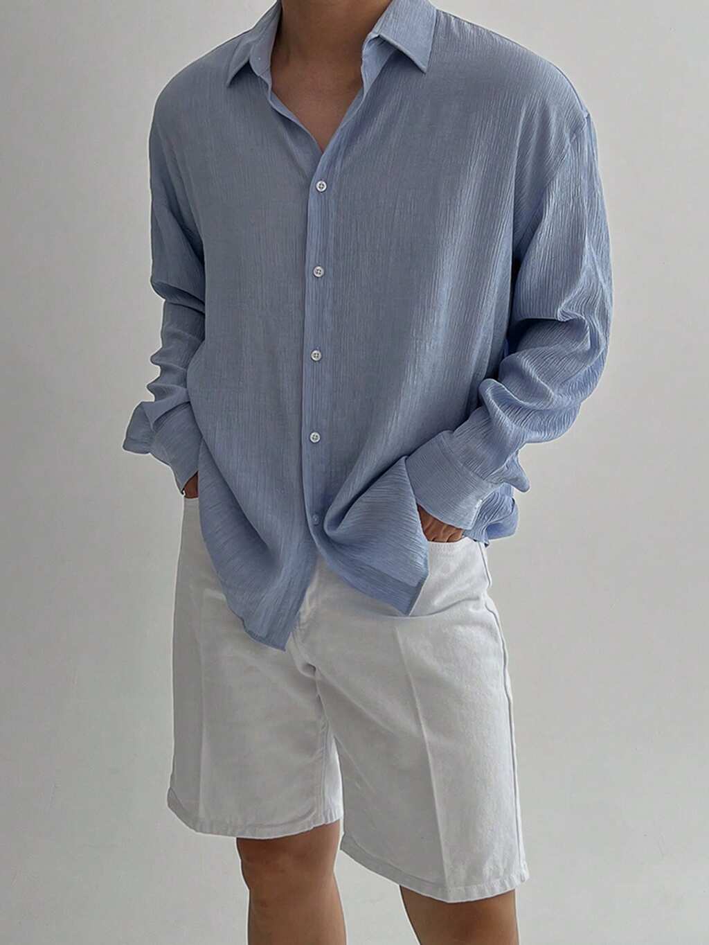 Men's Solid Blue Long Sleeve Shirt, Spring/Summer