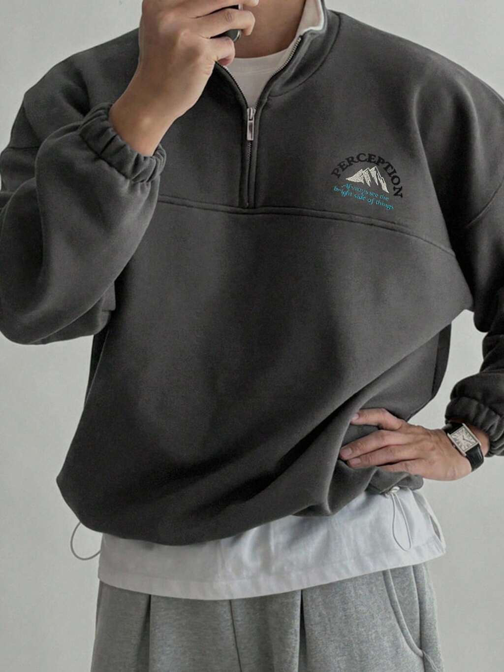 Men's Letter Embroidery Pullover Sweatshirt, Autumn Quarter Zip Men