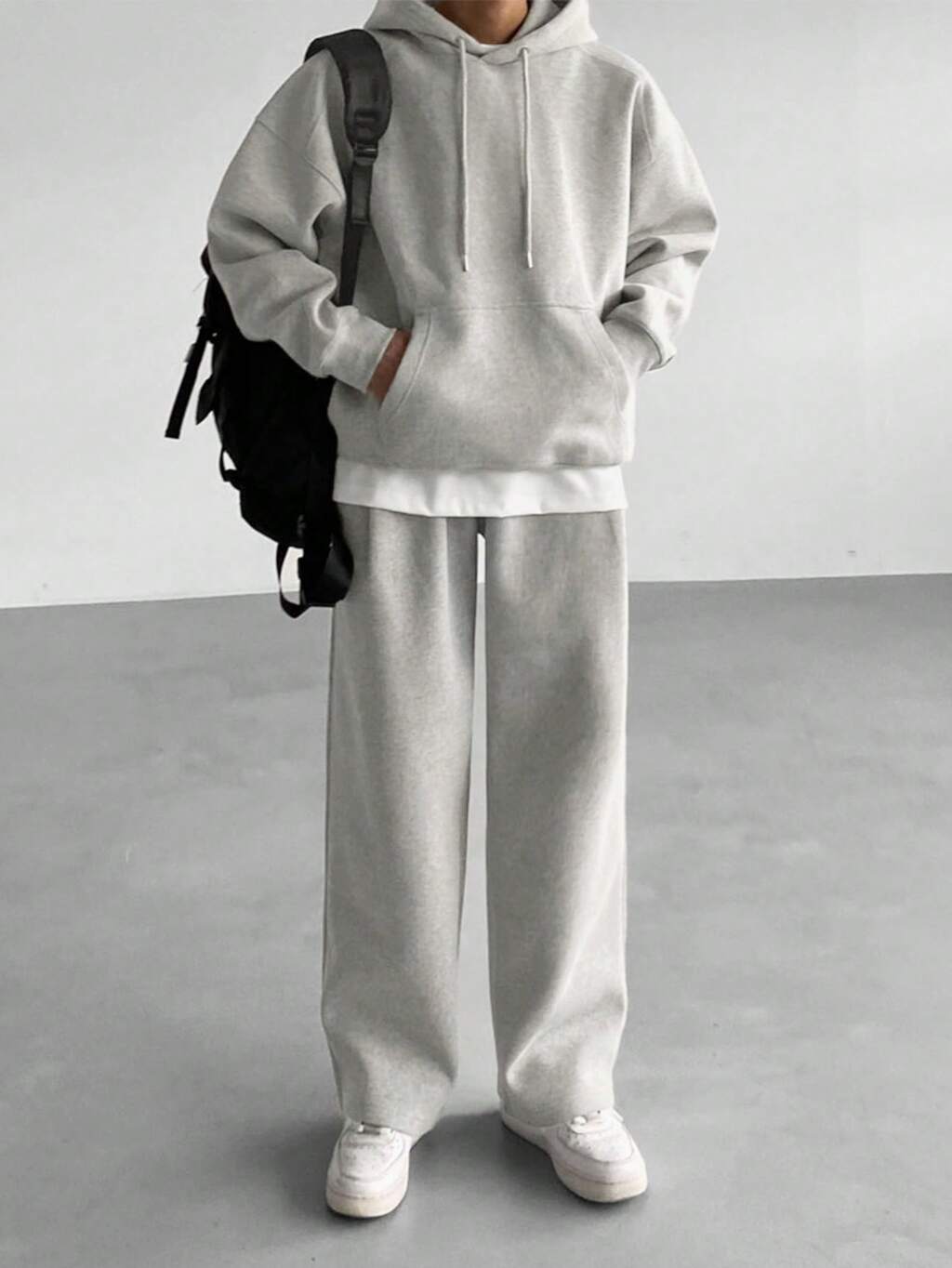 Men's Thick Grey Hoodie Set, Autumn/Winter